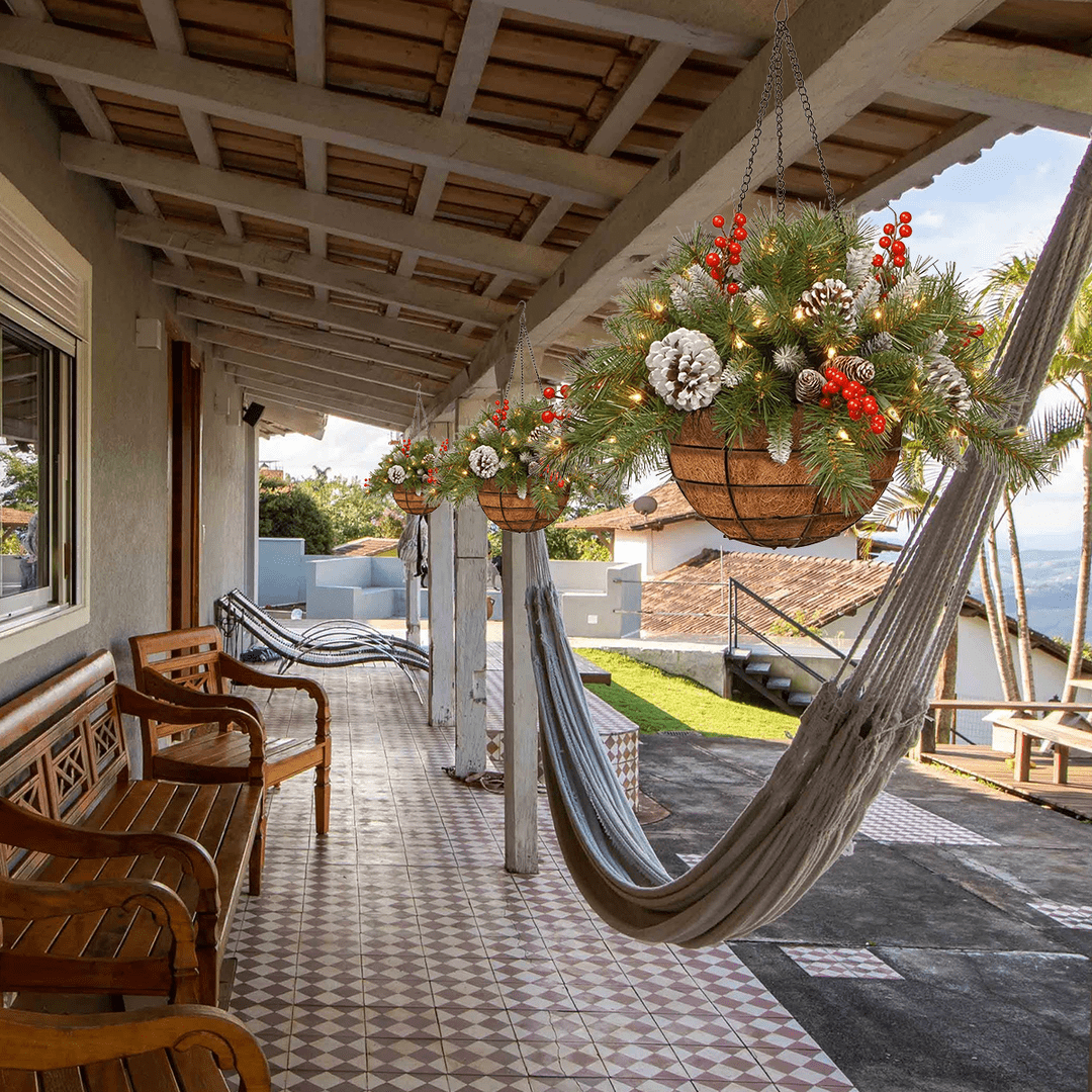 • EASY MAINTENANCE: No need to water or clean up needles, this hanging pine basket will last many holidays with it's time-tested, fire-resistant, and non-allergenic needles.