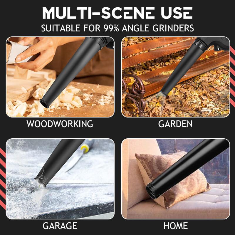 Suitable for 99% angle grinders. It can easily blow/suction leaves, sawdust, and dust in your house, garden, garage, car, and woodwork job sites.