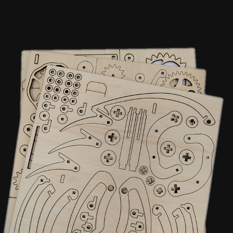 This is a wooden kinetic sculpture that simulates the motion of a hummingbird in flight.