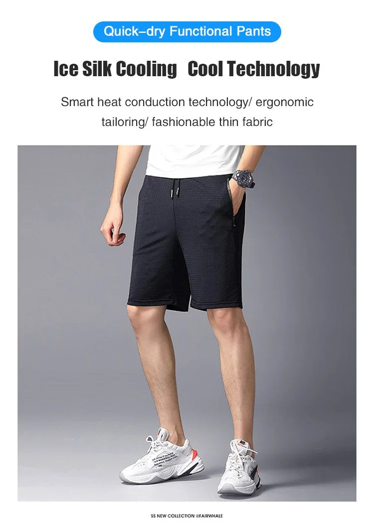 - 1*Men's Ice Silk Cotton High Stretch Five Point Pants