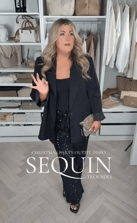 These sequin trousers are perfect for a cute lil Christmassy outfit ✨Make a bold statement with these Women's Sequin Sparkle Wide Leg Pants—the ultimate fusion of glamour and comfort.