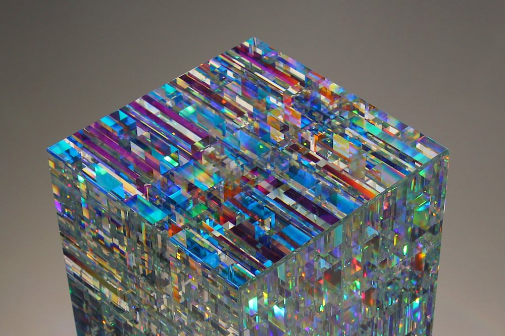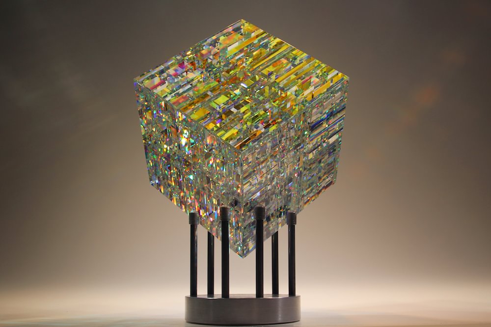 Every cold glass sculpture starts from the core. Then the artist cuts, grinds, polishes and laminates the glass together hundreds of times; until he achieves the core design he desires.