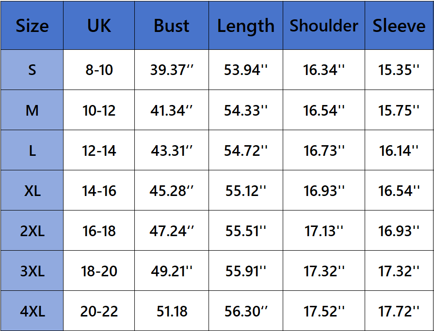 - Size:S, M, L, XL, 2XL, 3XL, 4XL