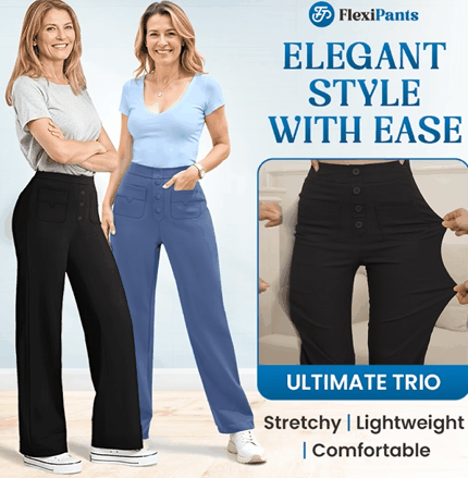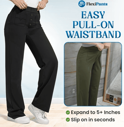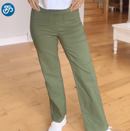 Pants feature an elastic waistband and faux button design, letting you slip into style in just seconds—a hassle-free upgrade from traditional buttons and drawstrings.