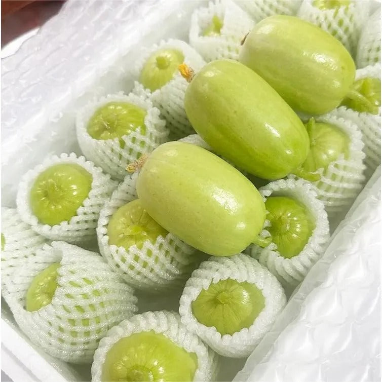 'Jade Maiden Cucumber' is a new variety of cucumber with super small fruits that are sweet, crisp, refreshing and delicious. It has a pale white color, uniform size and shape, and is even more decorative when planted continuously.