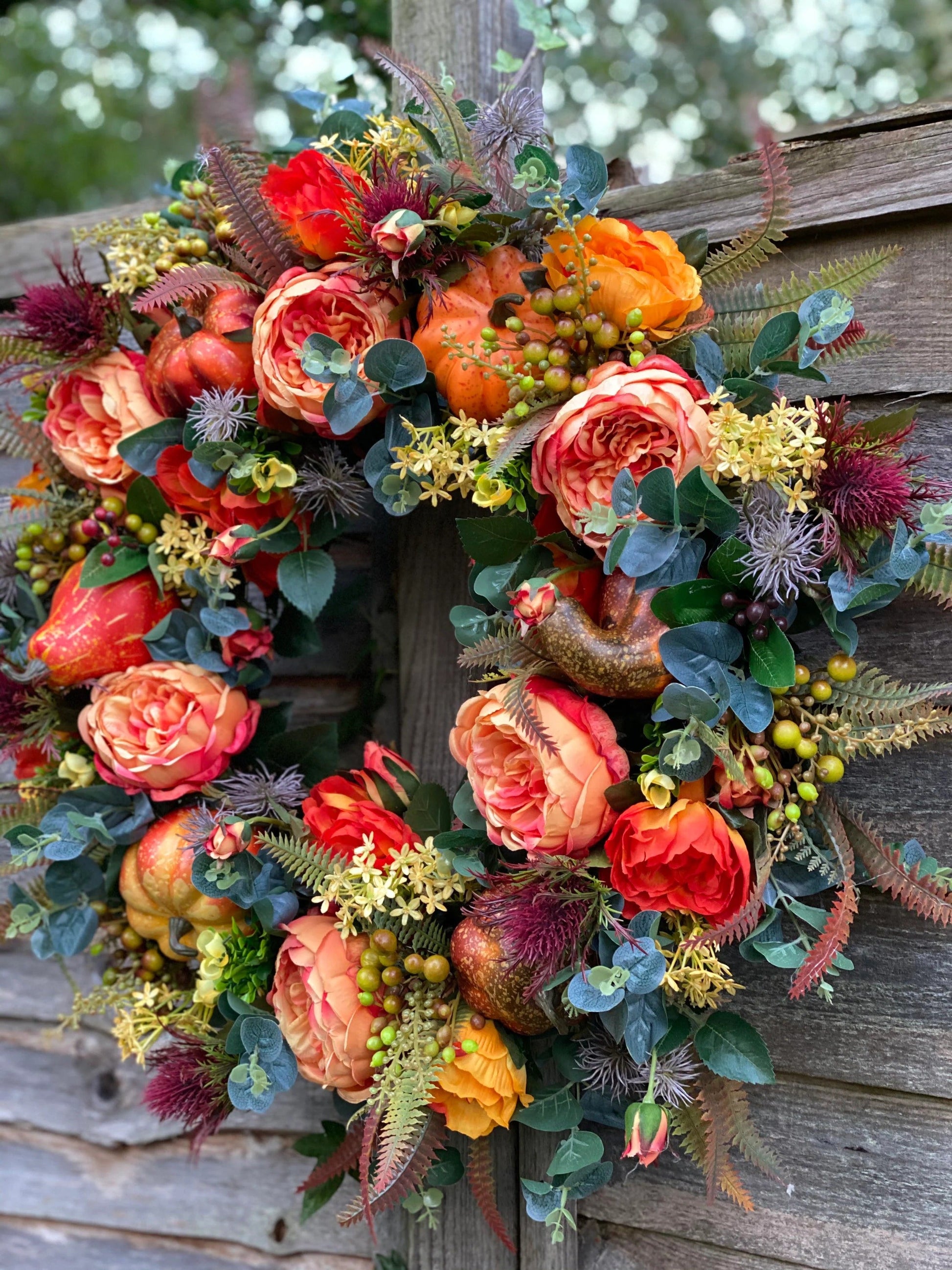 Fall Peony and Pumpkin Wreath - Year Round Wreath