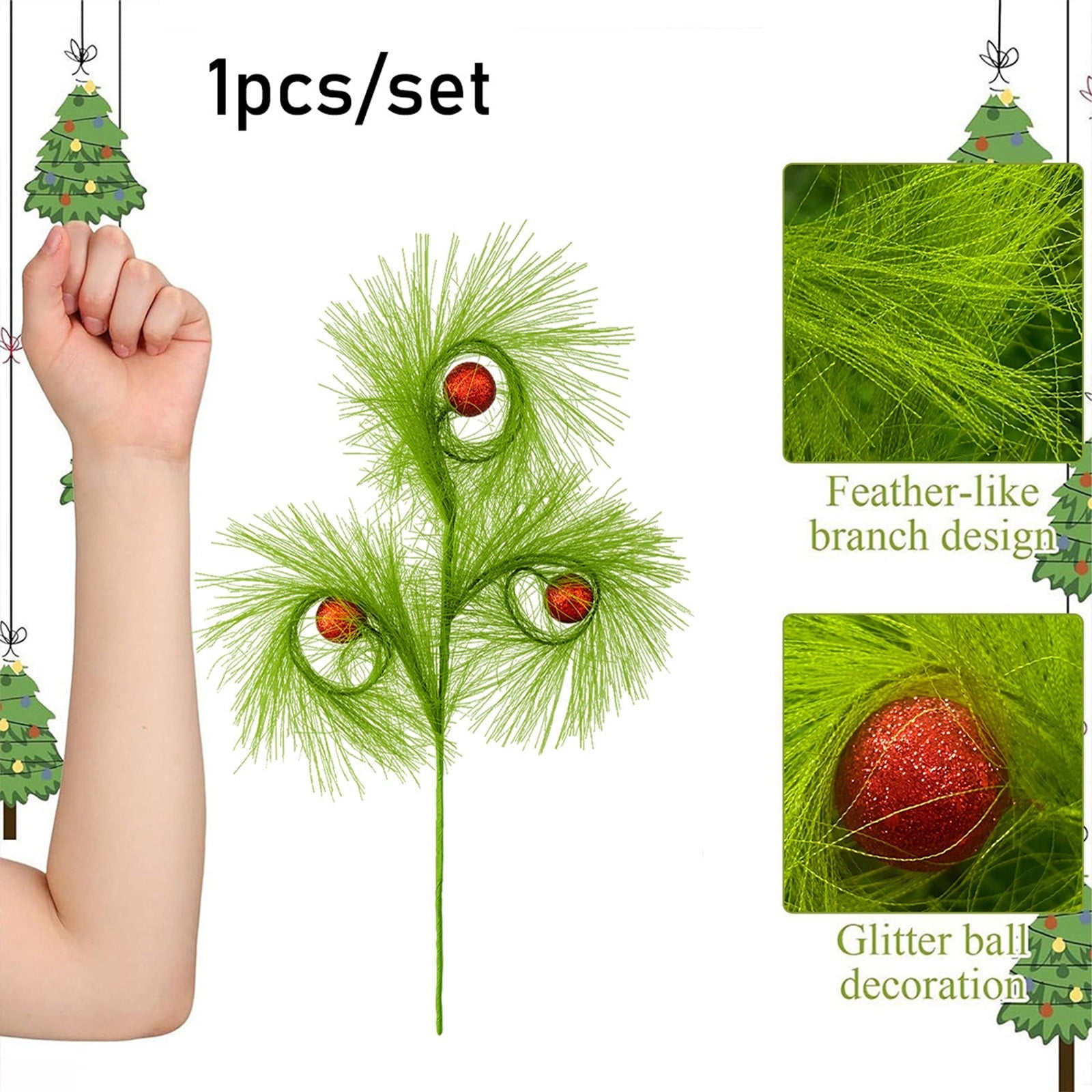- Christmas tree branch decorations, artificial Christmas greenery, foam Christmas picks, holiday wreath accents, Christmas centerpiece picks, festive branch ornaments, green Christmas floral stems, DIY Christmas craft supplies, Christmas tree embellishments, indoor holiday decor accessories