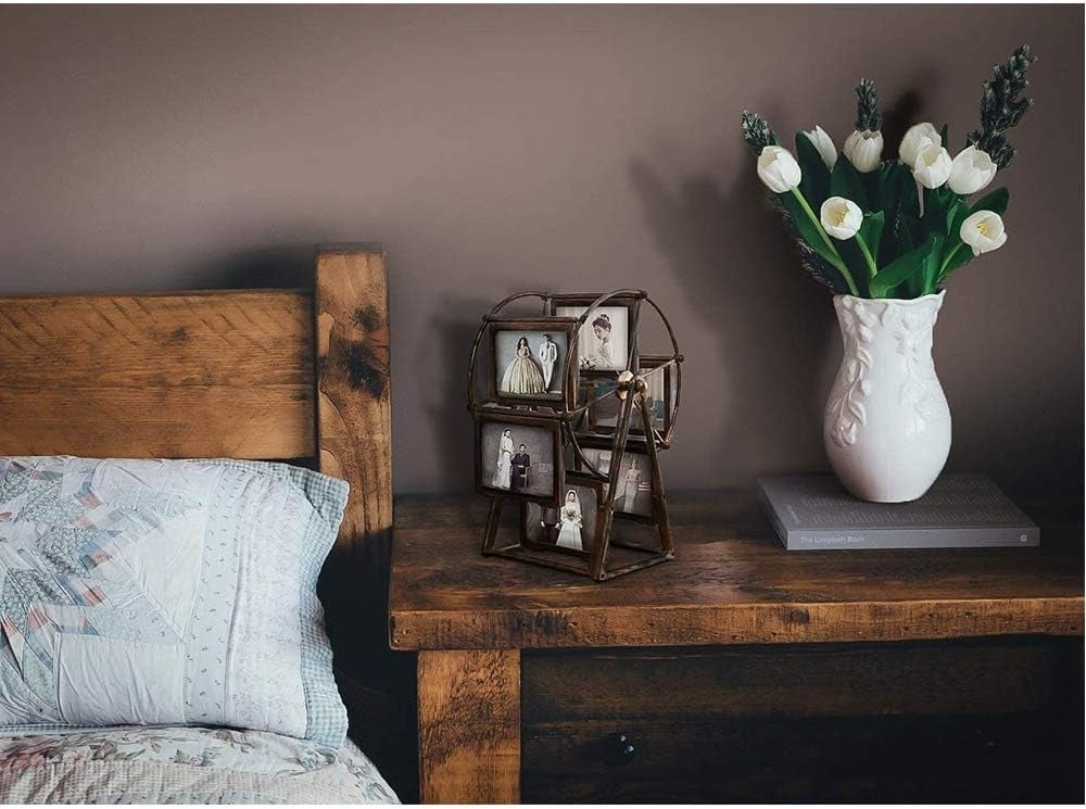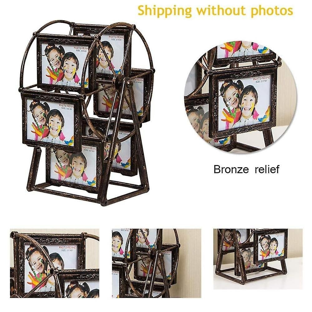 UPGRADED DESIGN - This picture frame features a retro ferris wheel. European style carved design. Ferris wheel photo frame contains six small photo frames that can hold up to twelve 5" x 3.5" photos. 360 degree rotation makes it a beautiful image display.