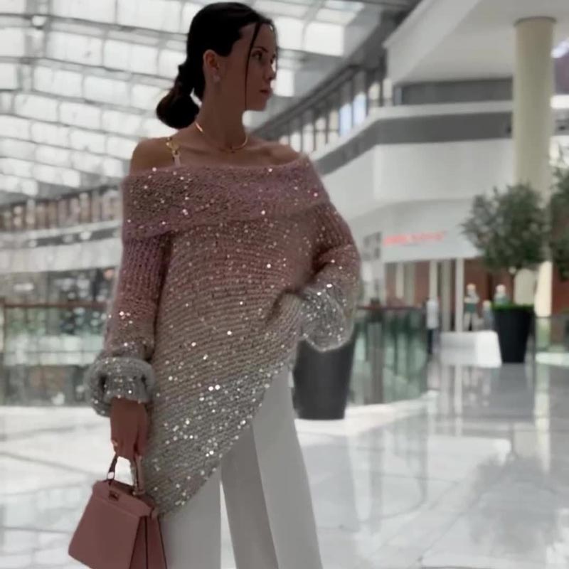 SPARKLING DETAIL ACCENTS: Subtle sparkling details add a touch of elegance and glamour, making this sweater suitable for both casual outings and more dressy occasions.